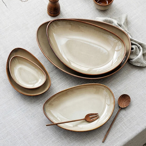 จานเซรามิกสำหรับใส่สเต็กทำจากเซรามิก,จานเซรามิกสีฟ้าแบบญี่ปุ่นจานพาสต้าอุปกรณ์รับประทานอาหารจานเซรามิกแบบไม่สม่ำเสมอ